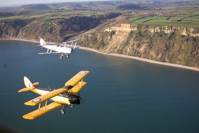 Enjoy a full hour of nostalgic open-cockpit flying in our classic Tiger Moth biplane as you journey from Dunkeswell Aerodrome to the stunning Jurassic Coast. Take in breathtaking views as you follow the coastline past Branscombe, Lyme Regis, and Chesil Beach to Weymouth, where the sweeping bay and harbour come into view. The return leg takes you inland over the rolling Devon countryside, completing a truly memorable flight that captures the spirit of 1940s aviation and the timeless beauty of England’s south coast.